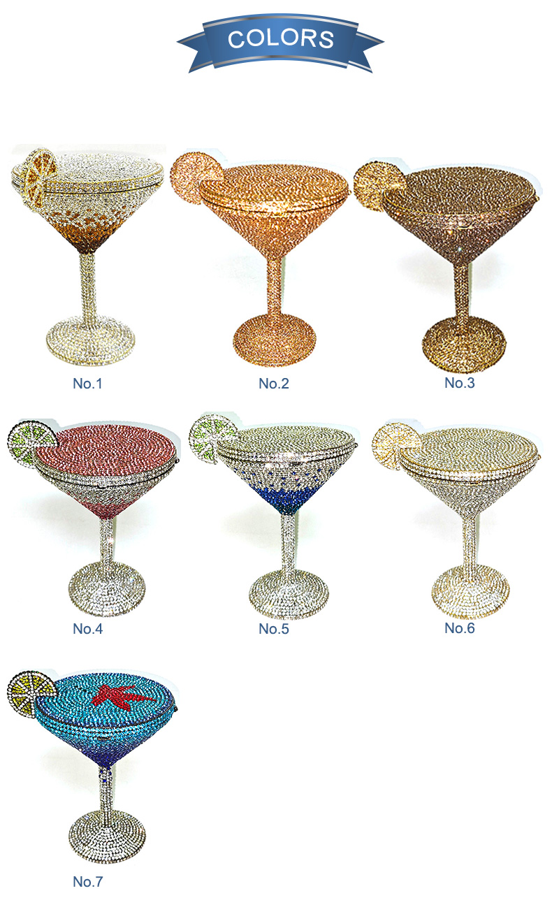 A classical crystal bag for your special occasions. A creative wine glass bag, a cylinder bag, just enough to hold in the hand. It has a lock and a removable short chain for you to carry. Many Nigeria women like this kinds of the evening purse. You can use it for attending evening parties, weddings, ceremony, etc.
