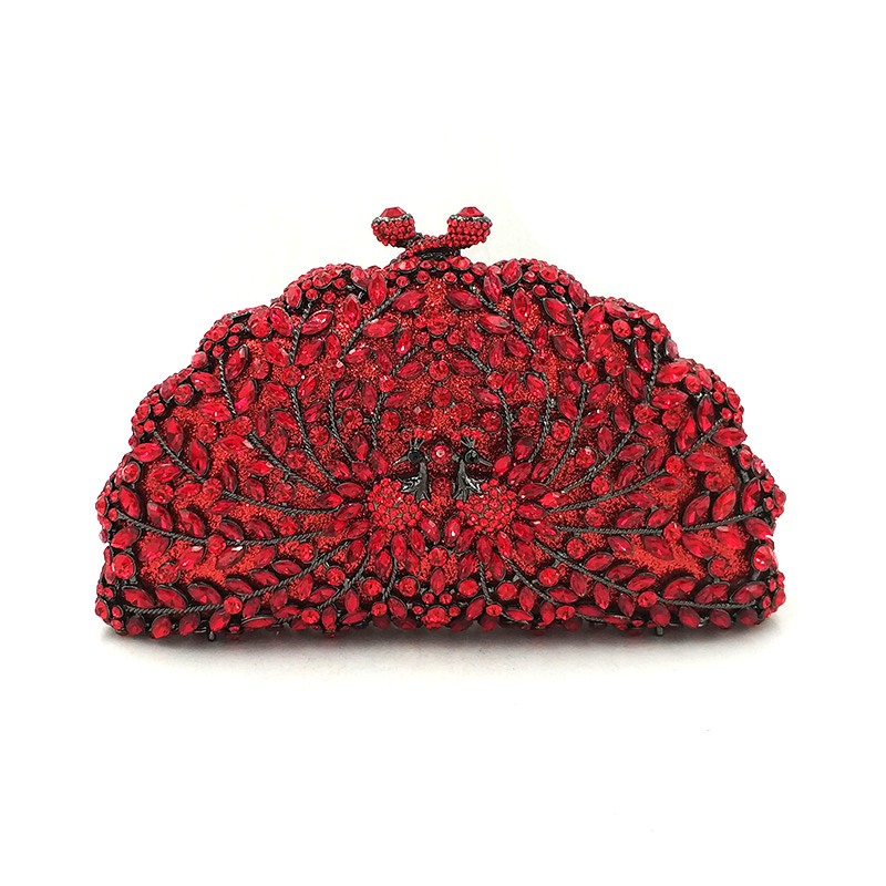 A classical crystal bag for your special occasions. A semi-fan-shaped woman's purse with two peacocks in the middle and diamonds all over the surface looks noble and mysterious. It is a perfect choice for evening parties, weddings, ceremony, etc.