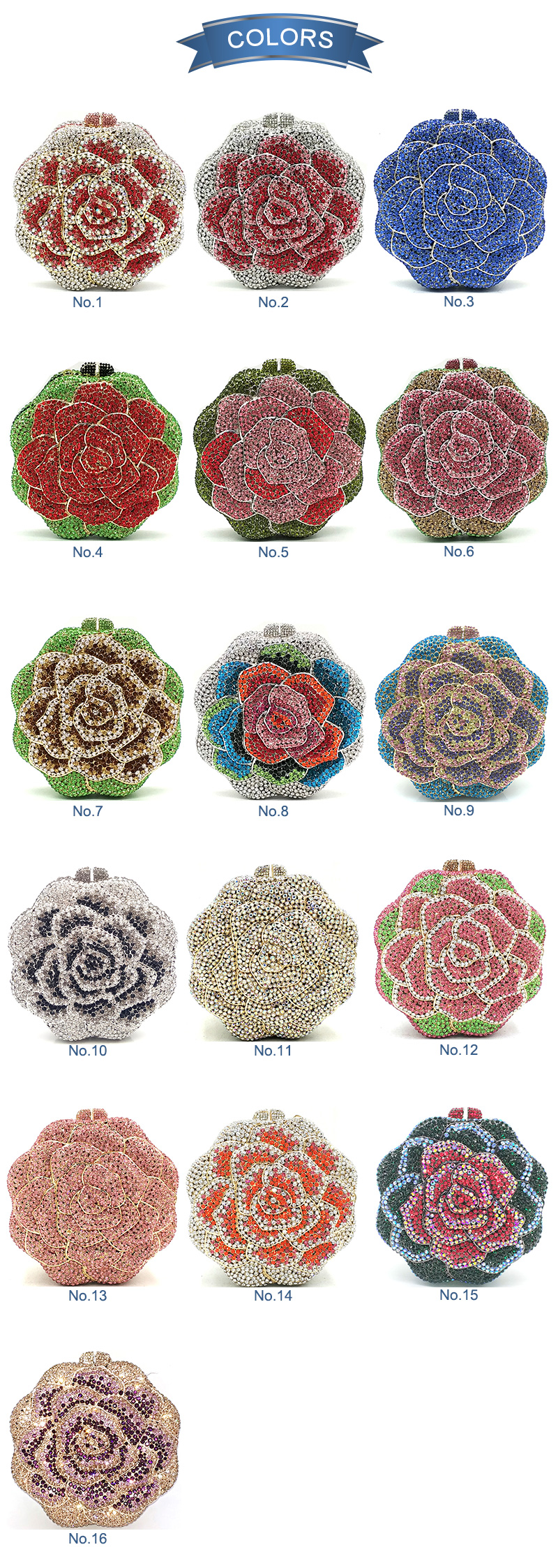 The shining crystal bring a bright light to these flowers. The Crystal in the light, shining charming brilliance, like the stars, the whole rhinestone bag set is very. Each crystal has been carefully selected and polished to achieve the ultimate shine, making the flowers more elegant.
