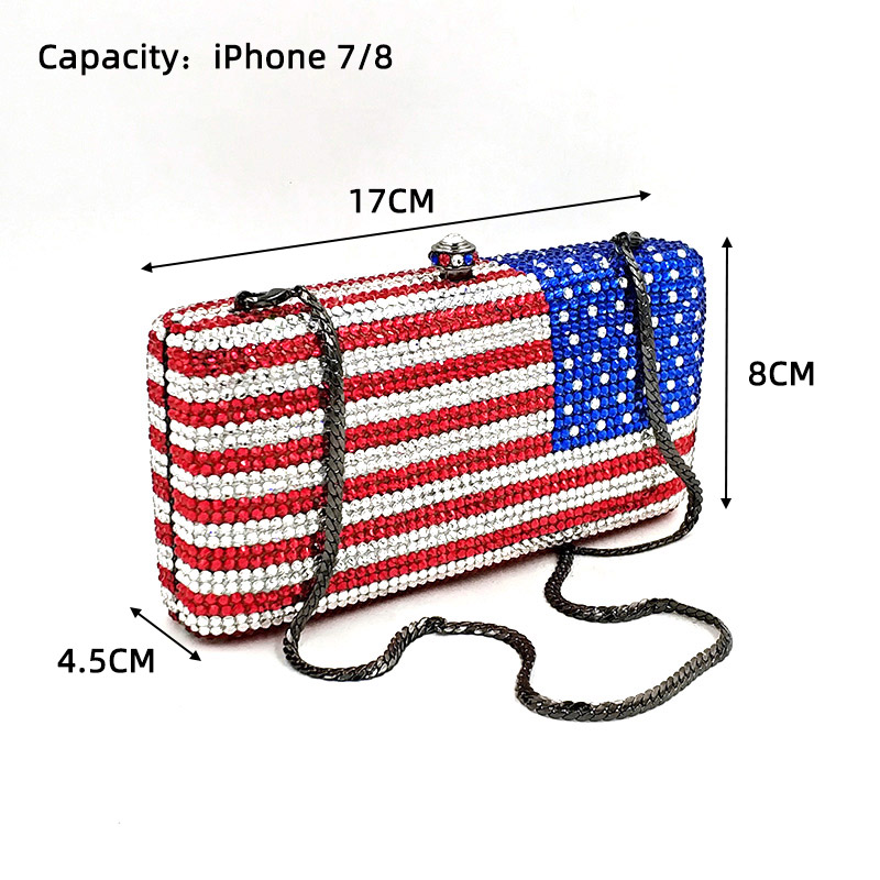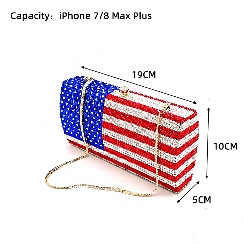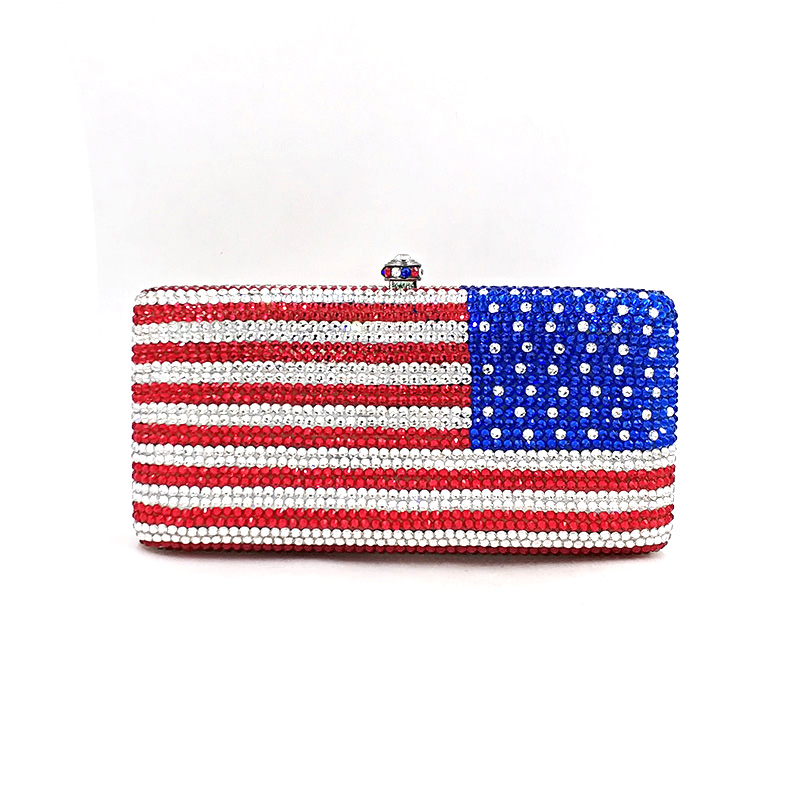 A crystal bag for your special occasions. A creative crystal evening bag, diamonds fully covered on the bag more shiny, suitable for young and energetic girls. A creative American flag diamond-encrusted bag, you can also customize the flag pattern you want. It is the best choice for many Nigerian women attending evening parties, weddings, ceremony, etc.