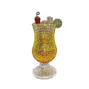 Crafted with shimmering crystals, it mimics a vibrant cocktail glass, complete with “lime slice” and “fruit garnishes”.