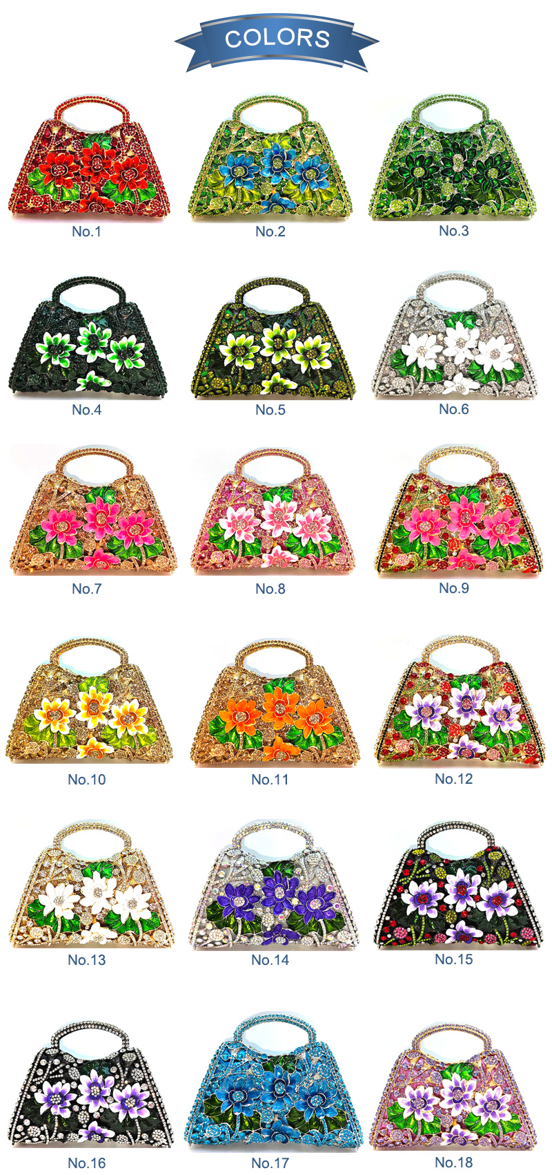 These floral rhinestone purses bags are the ultimate mix of color + glamour—each one’s a tiny, glistening garden you can carry.