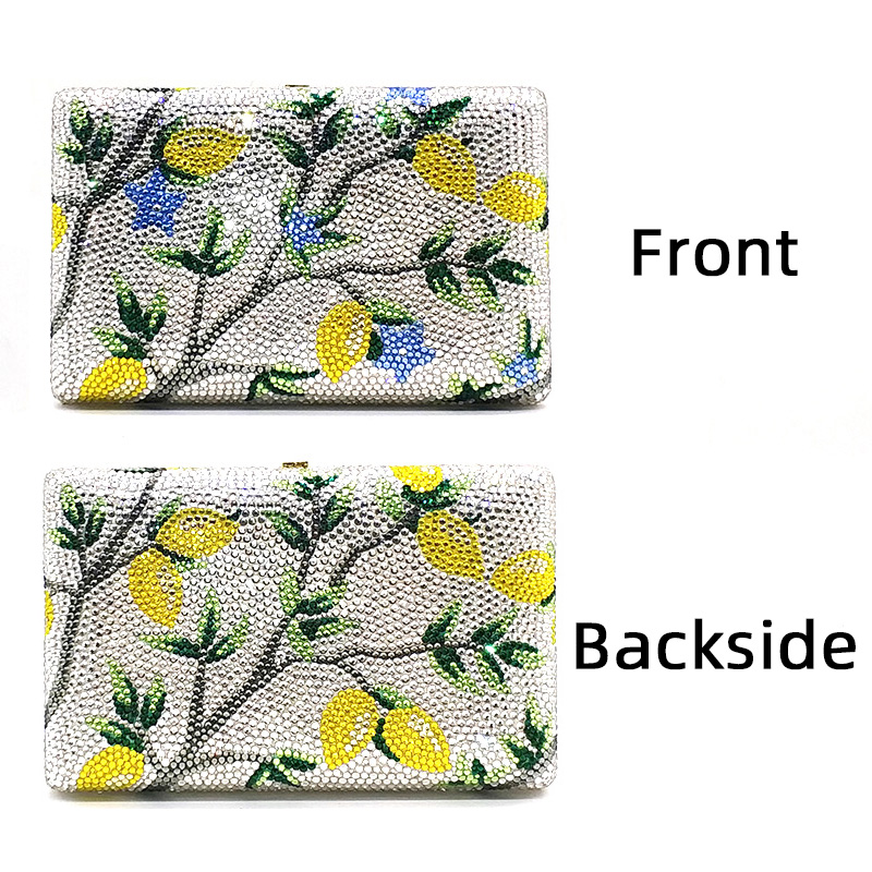 A crystal bag for your special occasions. A lemon tree crystal clutch for evening, the pattern of a lemon tree, a feeling of fresh and beautiful. The purse for women has a removable chain for your convenience. It is the best choice for many Nigerian women attending evening parties, weddings, ceremony, etc.