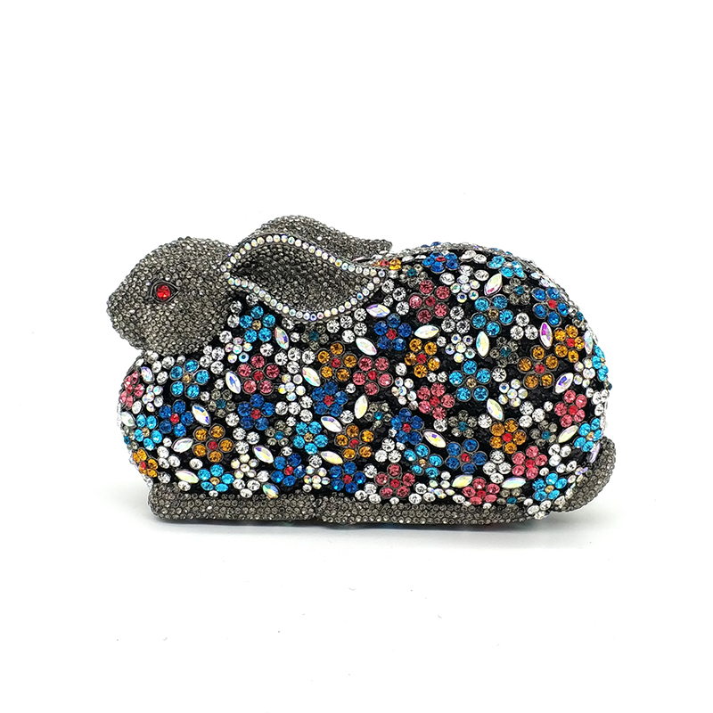 A crystal bag for your special occasions. A cute little rabbit evening bag, gorgeous diamonds covered on the rabbit clutch, realistic appearance and shiny colorful diamonds make the rabbit more cute. Many Nigeria women like this kind of the evening bag. You can use it for attending evening parties, weddings, ceremony, etc.