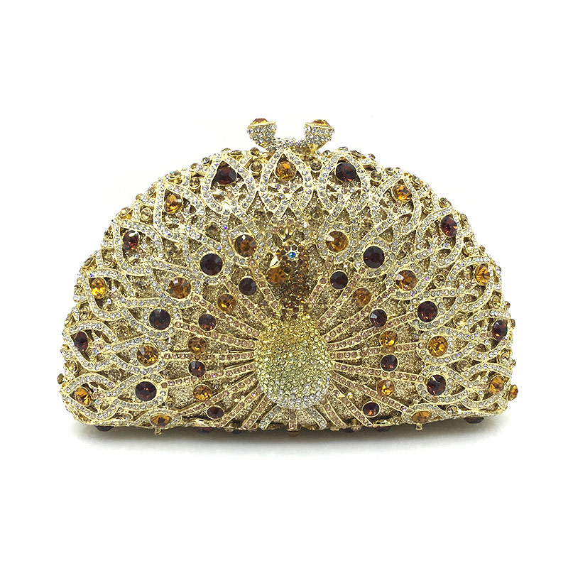 A crystal bag for your special occasions. A peacock crystal dinner bag, colorful peacock spreads its tail, showing its proud body, charming and beautiful. Many Nigeria women like this kind of the evening bag. You can use it for attending evening parties, weddings, ceremony, etc.