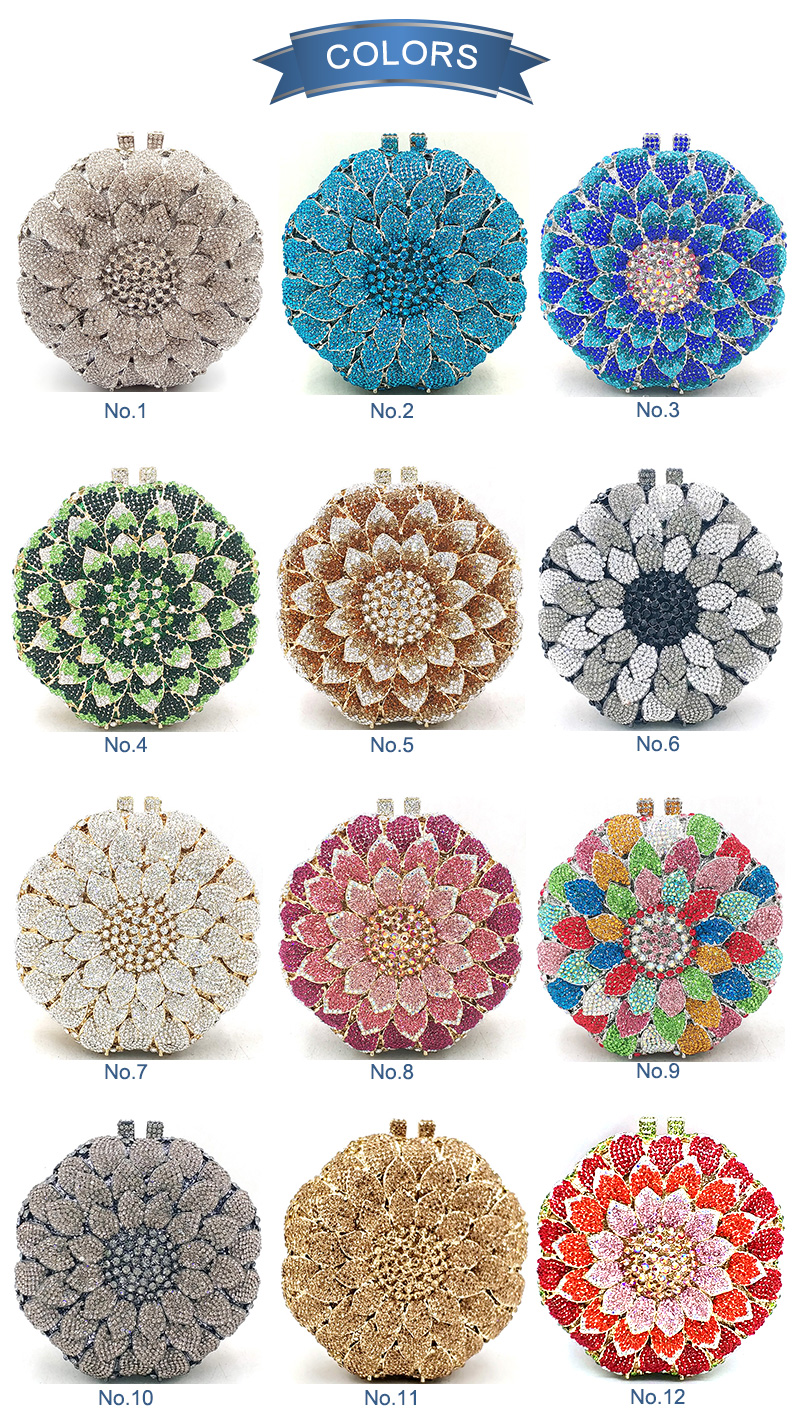 The shining crystal bring a bright light to these flowers. The Crystal in the light, shining charming brilliance, like the stars, the whole rhinestone bag set is very. Each crystal has been carefully selected and polished to achieve the ultimate shine, making the flowers more elegant.