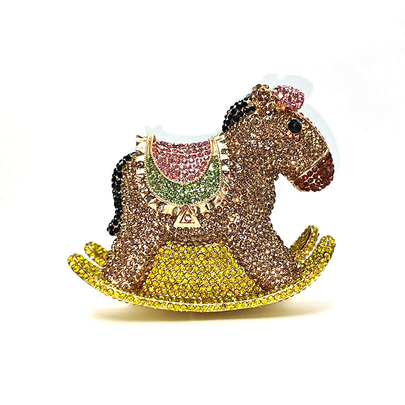 These rhinestone rocking horse purses bags are pure American retro charm—every curve (from the saddle to the rocker base) is covered in glistening crystals, with cute details like colorful saddles that feel straight out of a 1950s playroom. Tiny enough for your essentials, bold enough to turn heads at brunch or a vintage-themed party.