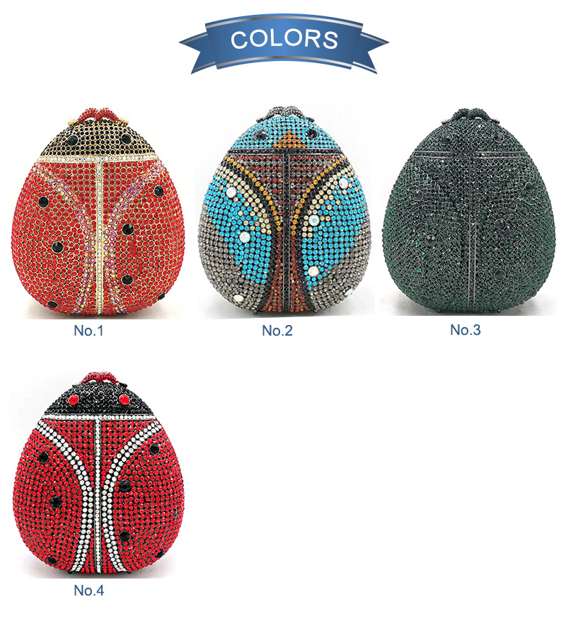 A classical crystal bag for your special occasions. A seven-star ladybird bag which sets with a variety of petty diamonds. The animal purse has a chain handle that can be worn to create a shoulder bag. You can use it for evening parties, weddings, ceremony, etc.