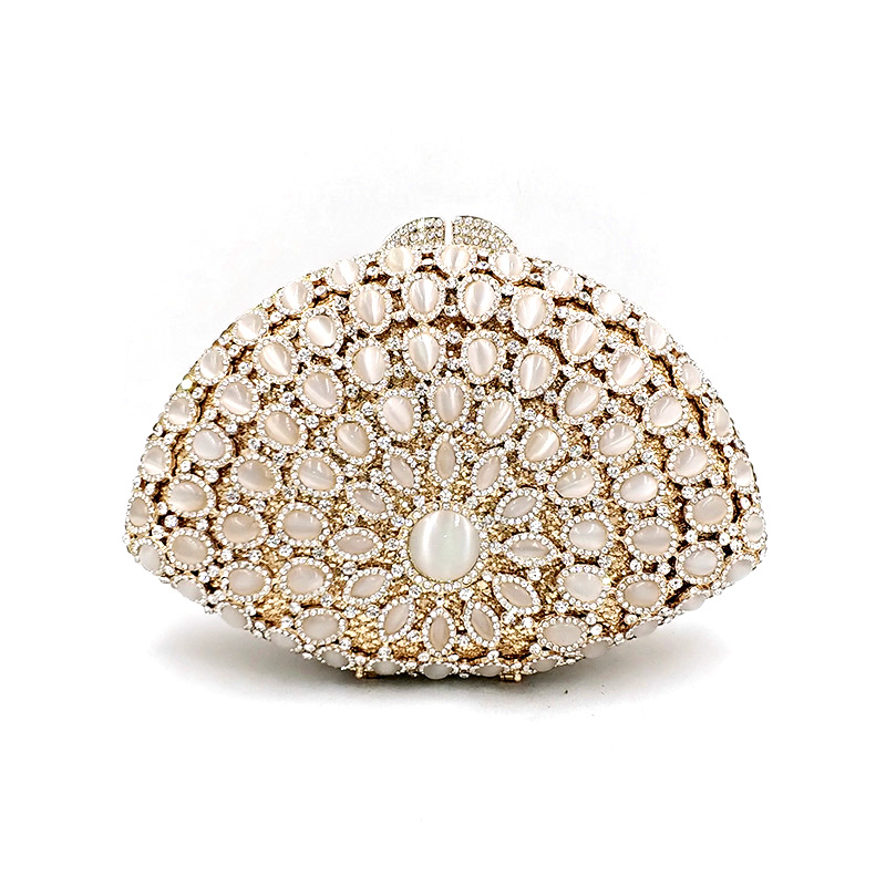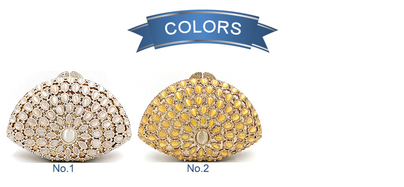 A classical crystal bag for your special occasions. A shell opal stones purse. A shape like a shell, the matching of shiny diamonds and pretty opal stones, more beautiful and elegant. Many Nigeria women like this kinds of the evening purse. You can use it for attending evening parties, weddings, ceremony, etc.